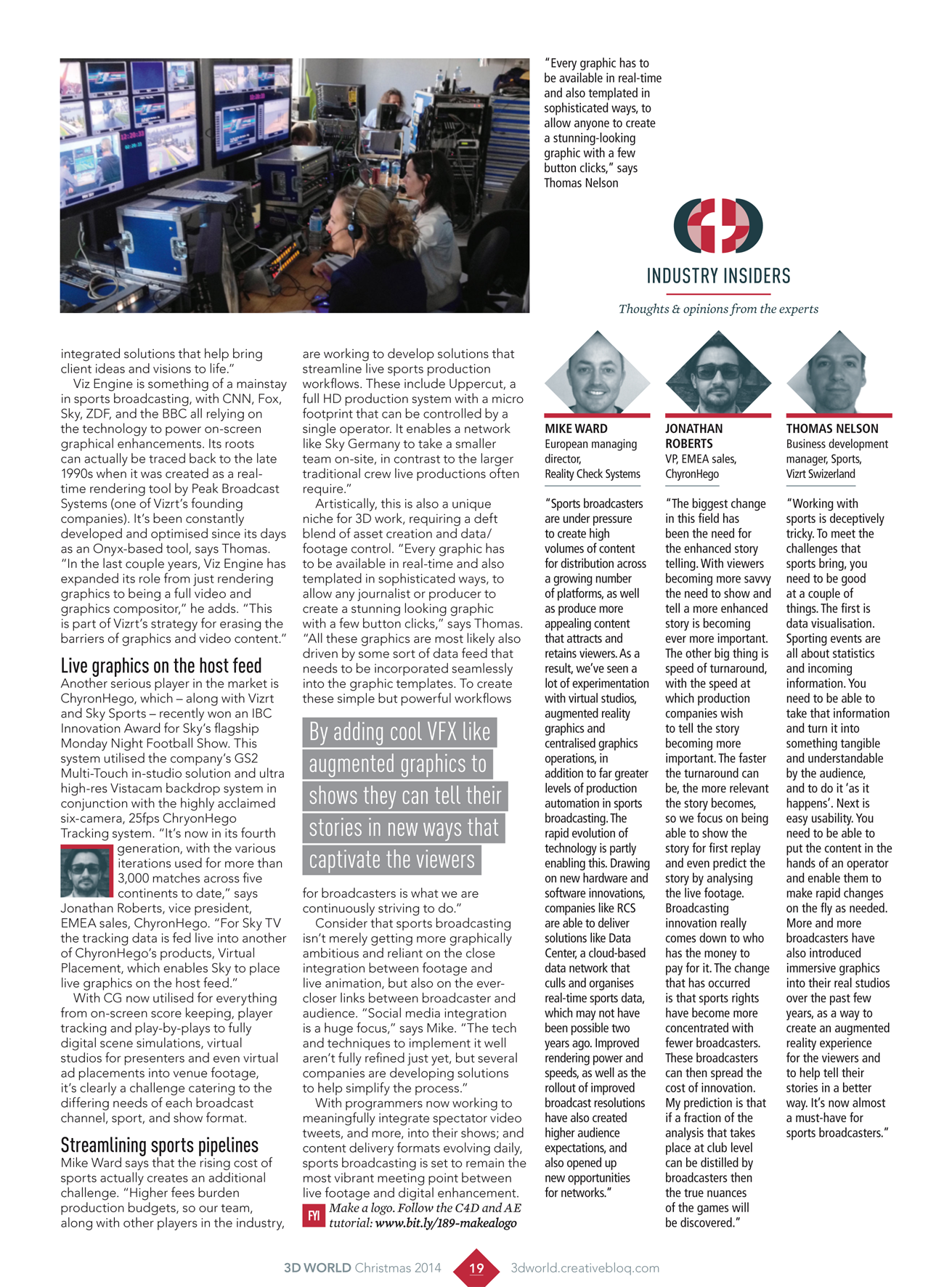 The Ford Monday Night Football Set won the innovation award for content creation based on the successful 3DVFX in house build & partnership with Vizrt / real-time tracking system Motion analysis to create a Virtual set that seamlessly blends real and virtual. Boasting the ability to be able to have life size player walk ups for formations among many other graphic overlays that could be offered up.